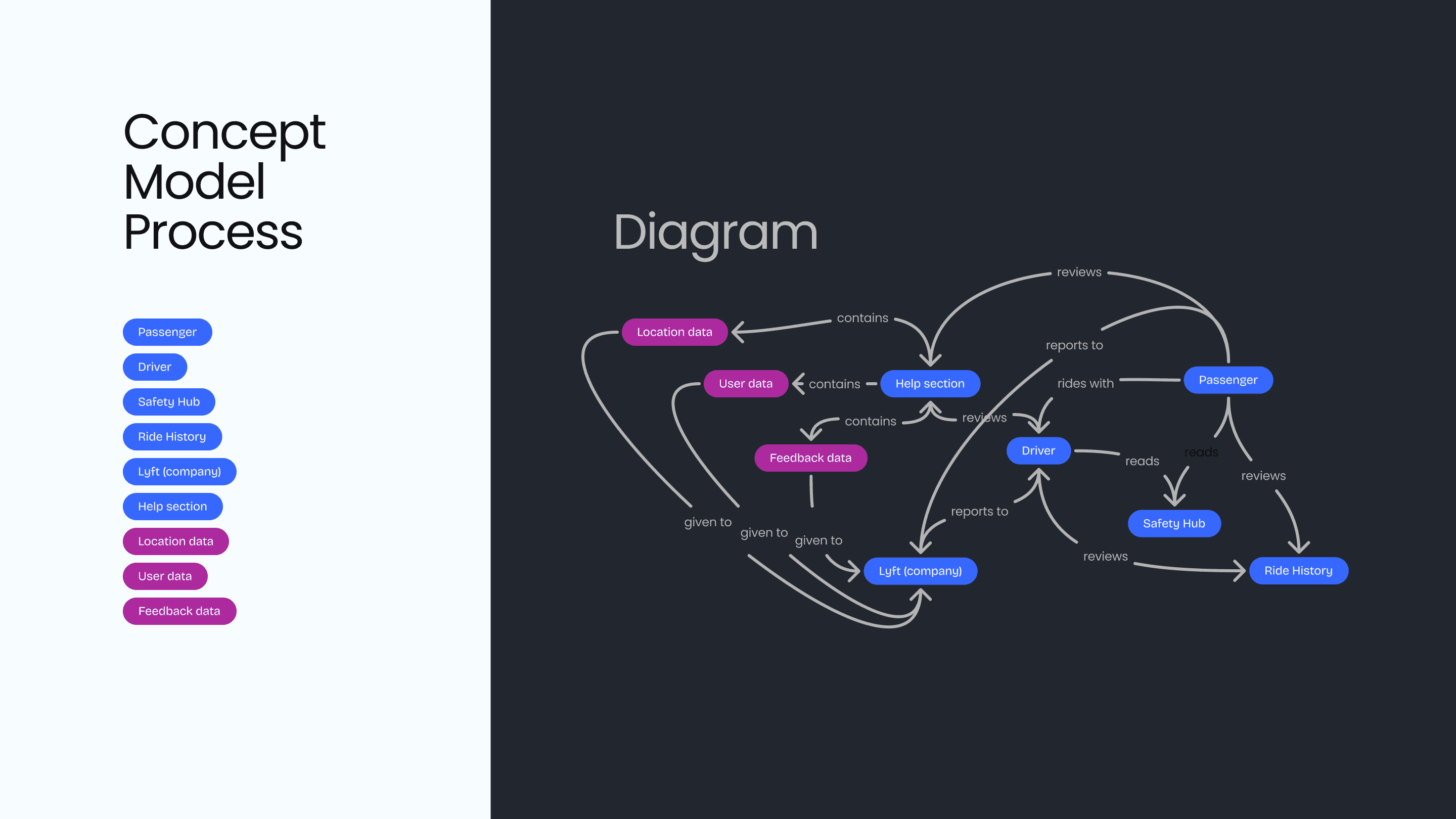 Concept modeling to understand relationships between the platform, passengers, and drivers