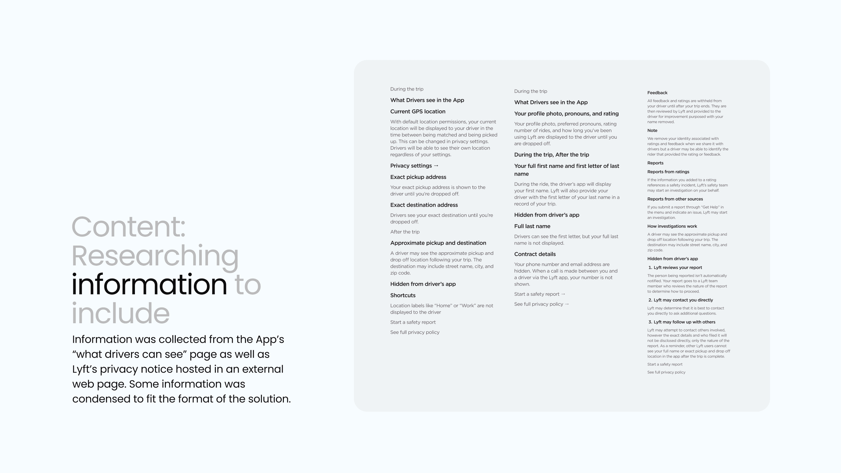 Initial interviews helped understand what information users seek from Lyft about their data and protection.